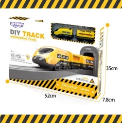 Vďaka 92 prvkom môžu deti ľubovoľne meniť rozloženie koľají a navrhovať nové okruhy. Magnetické spojky uľahčujú pripojenie dvoch vagónov, zatiaľ čo priložená stavebná technika, figúrka pracovníka a nástupište so staničnou budovou dotvoria živú scénu. Set podporuje jemnú motoriku, logické myslenie, kreativitu aj samostatnosť.