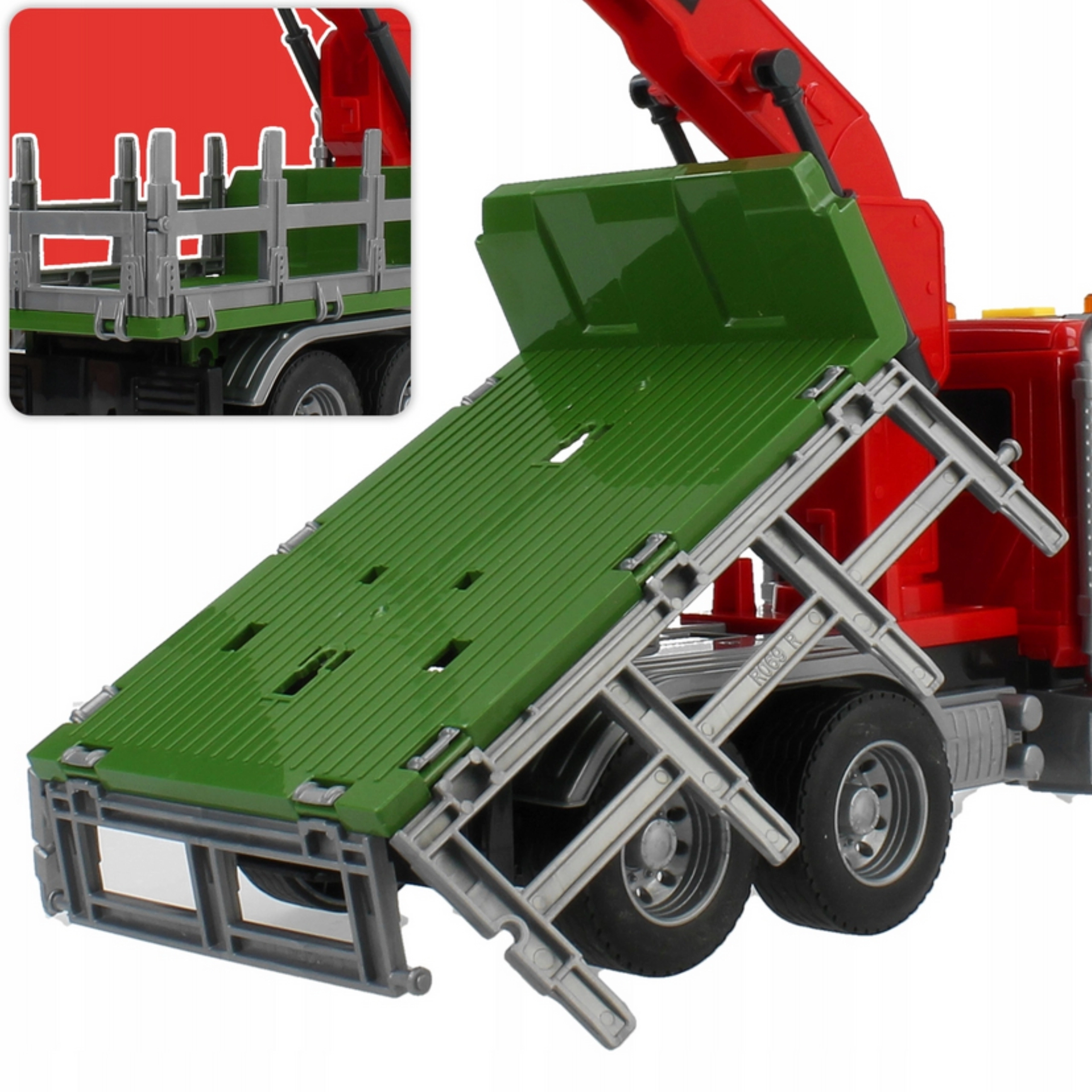 Objavte svet ťažkej techniky s nákladiakom WOOPIE v mierke 1:14. Dieťa môže ručne ovládať otočný žeriav s mechanickým chapadlom, prenášať priložené klády a simulovať skutočnú lesnícku prevádzku. Hru umocňujú realistické zvuky motora, klaksónu a práce žeriavu a jasné LED efekty.