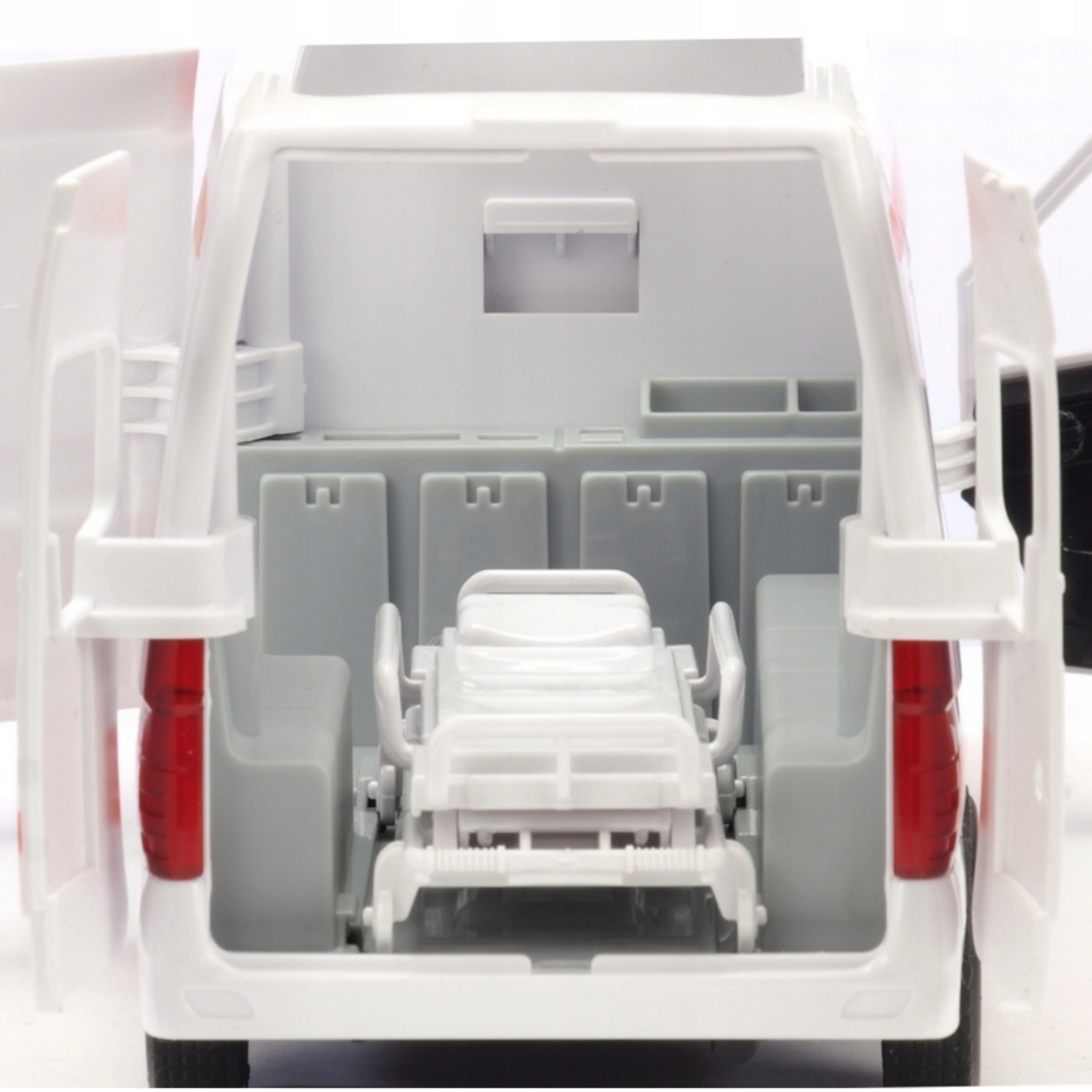 Súčasťou je vyberateľné nosítka na prevoz „pacientov“, zatiaľ čo setrvačníkový pohon a pohyblivé kolesá zaručujú plynulú jazdu po rôznych povrchoch – od podlahy cez koberec až po záhradu. Robustná konštrukcia z kvalitných materiálov odolá detským dobrodružstvám.
