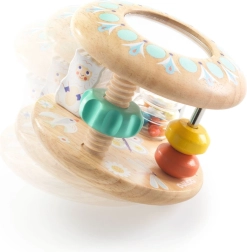 Objavte prvú zmyslovú hračku, ktorá zabaví aj rozvíja. Drevené hrkálka/rolovací valček DJECO Baby Tutti kombinuje hladké drevo, zrkadielko, koráliky a otočné prvky pre vizuálnu, sluchovú aj hmatovú stimuláciu. Bezpečné zaoblené tvary, kvalitné spracovanie a podpora jemnej motoriky robia z tejto hračky ideálnu voľbu pre deti od cca 10 mesiacov.