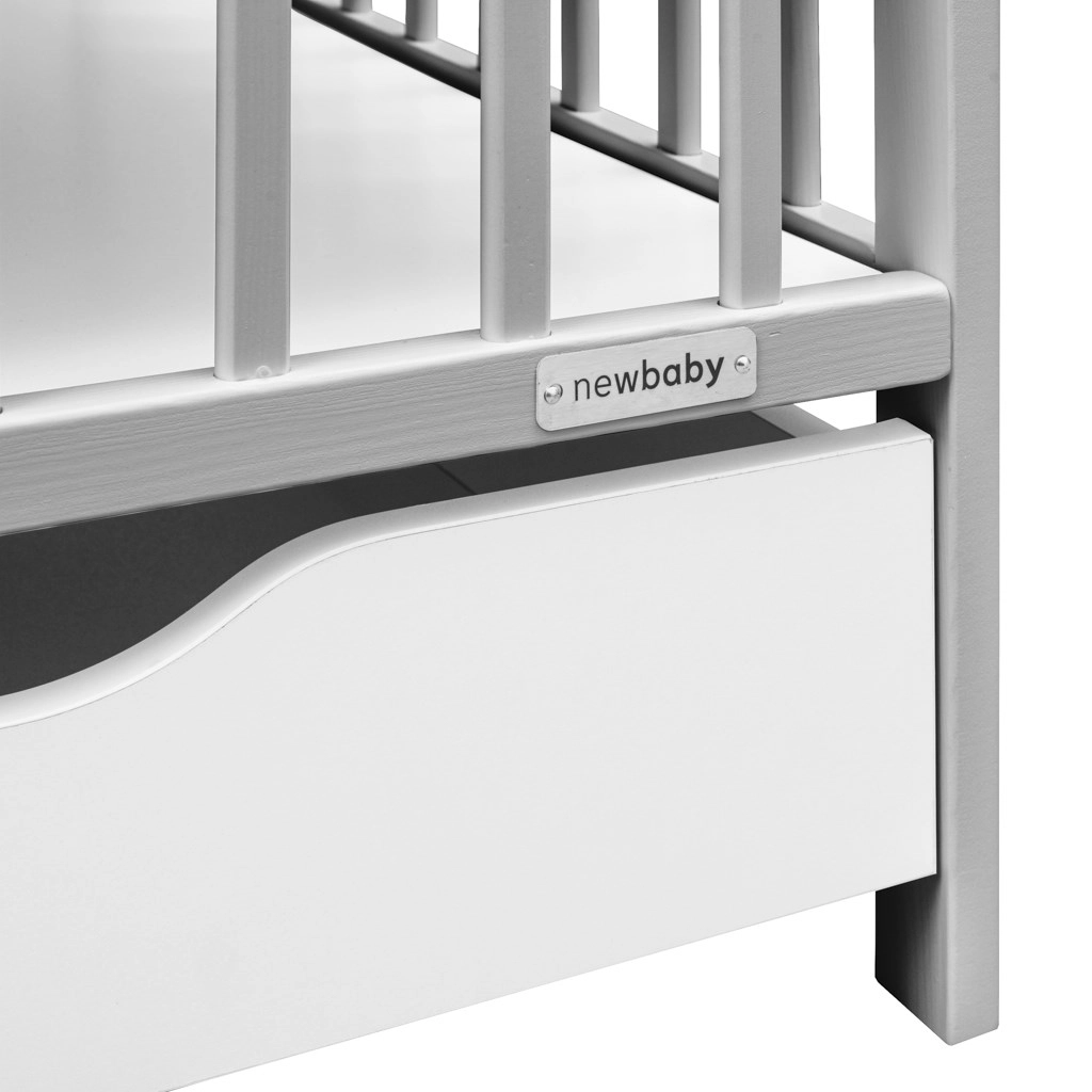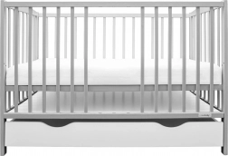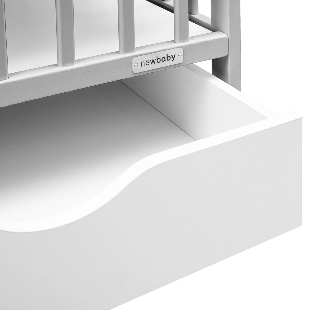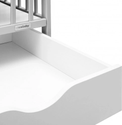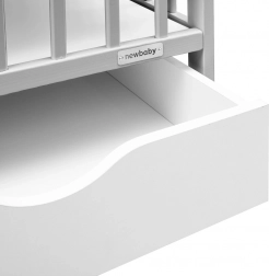 Praktická zásuvka z MDF na guľôčkových pojazdoch sa nedotýka podlahy, takže sa ľahko vysúva a zostáva čistá. Nastaviteľný rošt v troch výškach (22 / 38 / 51 cm od zeme) sa prispôsobí novorodencovi aj batoľaťu a tri vyberateľné priečky umožnia bezpečný samostatný vstup a výstup bez nutnosti spúšťať celú bočnicu.
