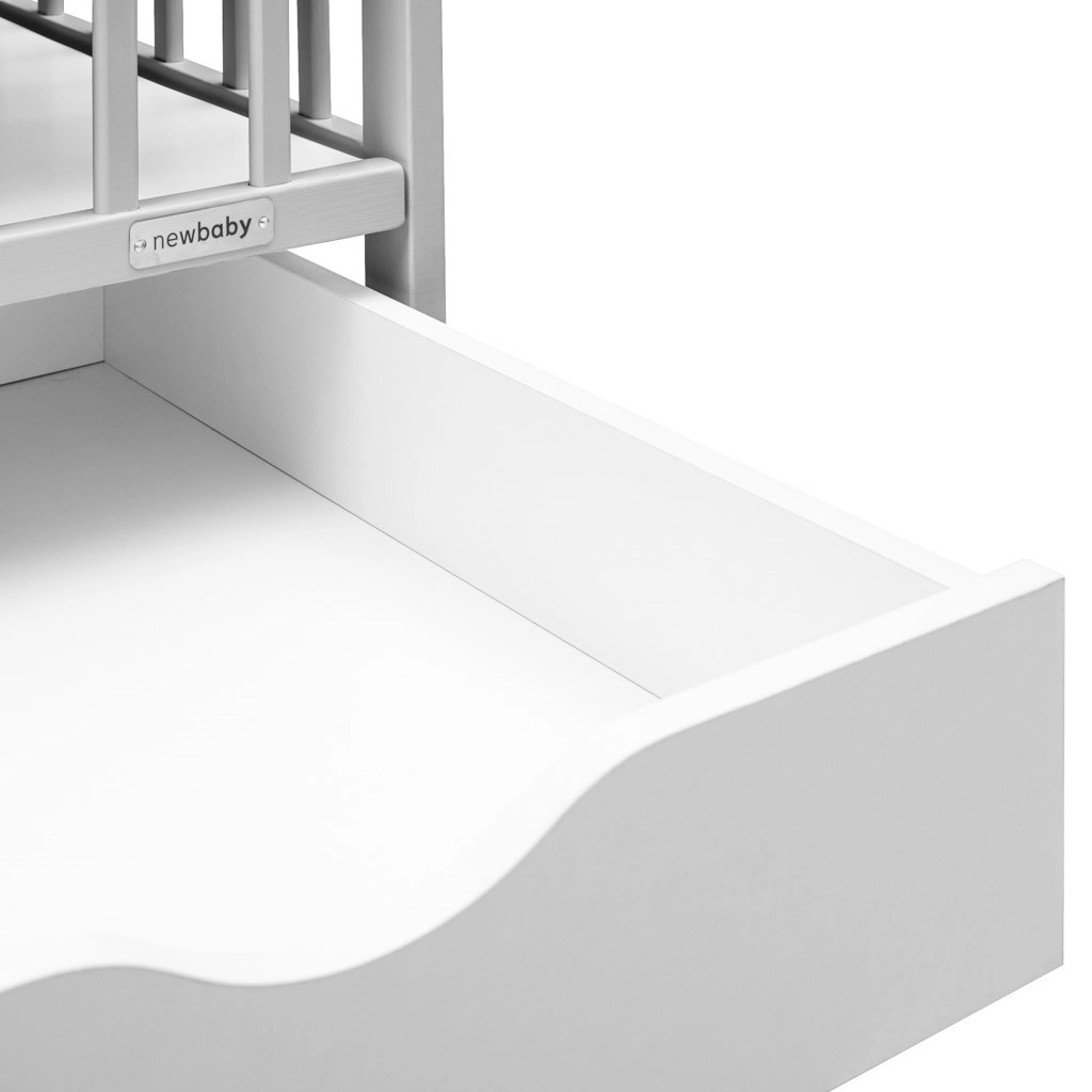 Integrovaná úložná zásuvka sa plynulo vysúva, nedotýka sa podlahy a udrží všetko potrebné po ruke – od plienok po obliečky.