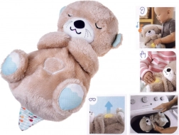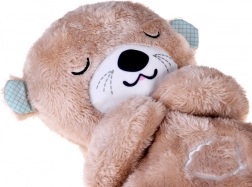 Hebká a maznivá vydra napodobňuje pokojný rytmus dýchania – jej bruško sa jemne zdvíha a klesá, čo deťom dodáva pocit blízkosti a istoty. Integrované svetlo na brušku sa plynulo rozjasňuje a tlmí, aby nerušilo, ale upokojovalo pri zaspávaní. K dispozícii je biely šum, prenatálne zvuky, tlkot srdca aj nežné uspávanky.