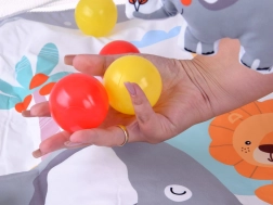 Táto edukačná podložka s mäkkým polstrovaním a veselými zvieratkami vytvára bezpečný kútik na objavovanie sveta od prvých dní. Dva krížené, ľahko odnímateľné oblúky nesú závesné hračky, ktoré lákajú na sledovanie, uchopovanie a pohyb. Sieťované bočnice pomáhajú udržať hračky aj loptičky vo vnútri a zvyšujú pocit bezpečia.