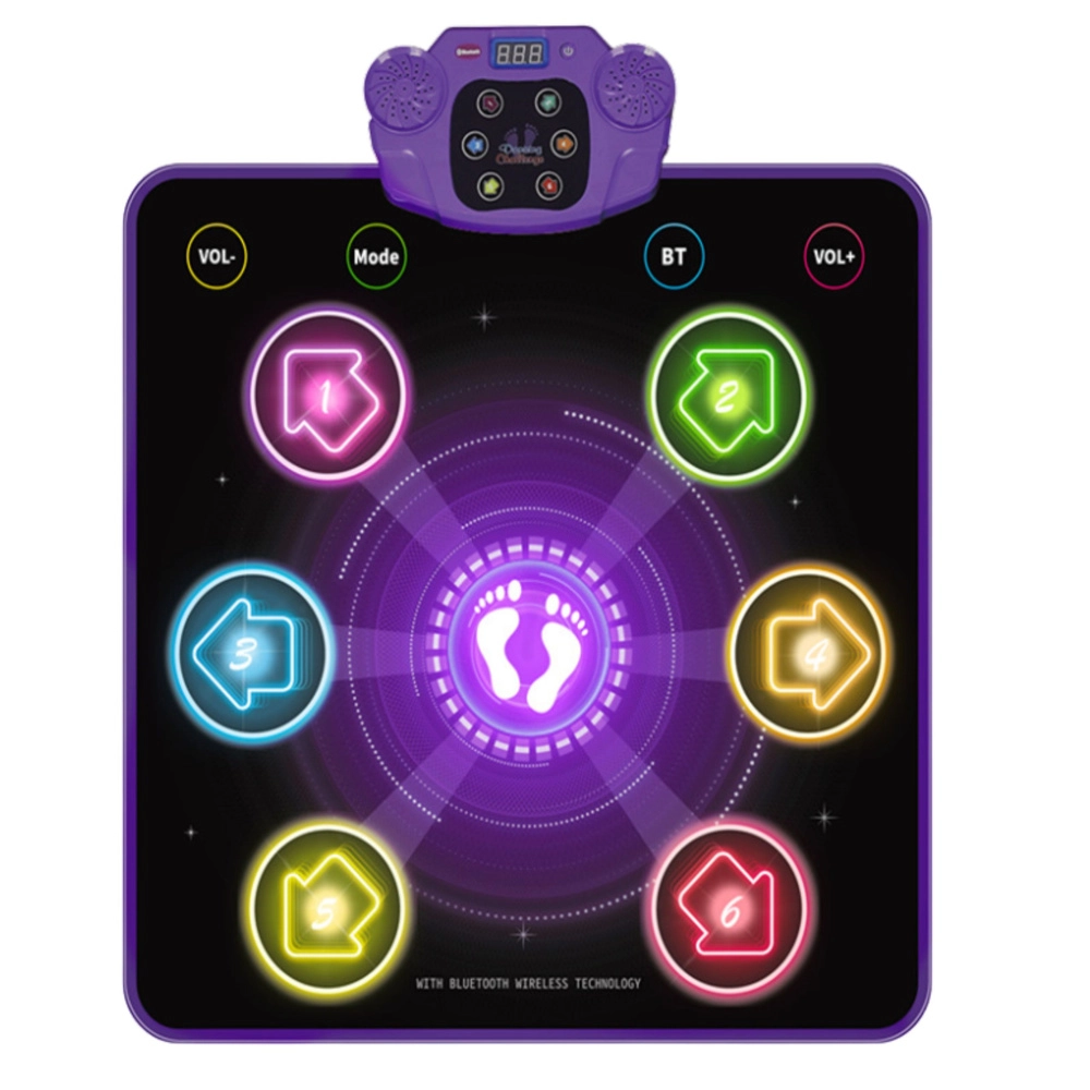 Interaktívna tanečná podložka pre deti spája pohyb, hudbu a učenie v jednom. Vďaka pripojeniu Bluetooth prehráte obľúbené pesničky zo smartfónu, 5 herných režimov prispôsobí náročnosť veku dieťaťa a LED efekty so 6 smerovými šípkami premenia tanec na zábavnú výzvu. Bezpečnú prevádzku zaisťuje mäkký, protišmykový a vodoodolný povrch a praktické funkcie ako regulácia hlasitosti, ztlmenie a režim spánku.
