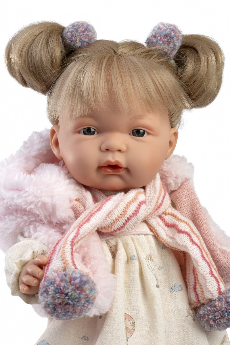 Bábika Joelle od LLORENS je precízne spracovaná do posledného detailu: jemné líčenie, realistické riasy, výrazné oči a hebké oblečky z organickej bavlny, vlny a recyklovaných materiálov. Vďaka mäkkému telíčku je ideálna na mojkanie a každodenné hranie.