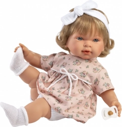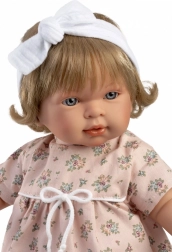 Roztomilá plačúca bábika Carla 42 cm poteší realistickým vzhľadom, mäkkým telíčkom a kvalitným ručným spracovaním zo Španielska. Má vinylové končatiny a hlavičku, nosí jemné štvordielne oblečenie a po vybratí cumlíka plače, čo podporuje starostlivosť, empatiu a napodobňovanie pri hre.