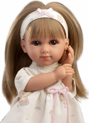 Bábika ELENA 35 cm od LLORENS je starostlivo ručne vyrobená v Španielsku. Vyniká jemne modelovanými rysmi tváre, realistickými riasami a prirodzeným vzhľadom vlasov. Kombinácia mäkkého telíčka a pevných vinylových častí zaisťuje pohodlné maznanie aj ľahké polohovanie pri hre.