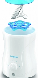 Multifunkčný ohrievač BABYONO Natural Nursing kombinuje ohrev fliaš, dojčenského mlieka aj pohárikov s príkrmami a účinnú sterilizáciu drobných doplnkov. Vďaka jednoduchému otočnému ovládaču si ľahko zvolíte jednu z troch teplotných úrovní pre rýchly a rovnomerný ohrev.