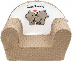 Štýlové a funkčné kresielko z minky od českej značky NEW BABY sa stane obľúbeným miestom na oddych, čítanie aj hranie. Hebká minky látka s typickými výstupkami podporuje senzomotorickú stimuláciu a je príjemná na dotyk. Roztomilá potlač medvedíkov Cute Family krásne doplní interiér izbičky.