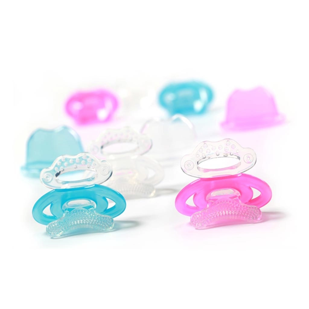 Pre ešte väčšiu úľavu možno hryzátko chladiť v chladničke. Špeciálna konštrukcia umožňuje naniesť upokojujúci gél na ďasná, ktorý sa vďaka štruktúre rovnomerne rozotrie. Materiál je bez BPA a ľahko sa udržiava v čistote.
