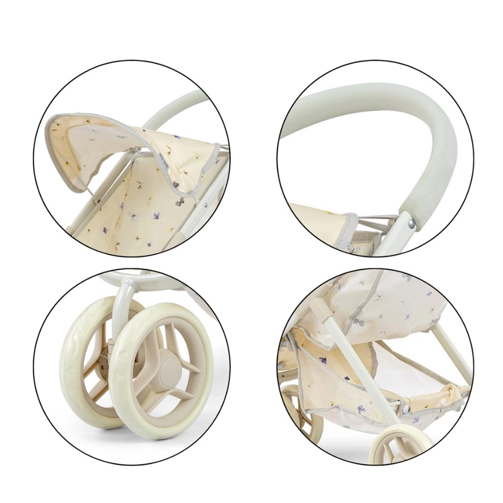 Obľúbený kočík MILLY MALLY Susie Nature prináša deťom realistický zážitok z vozenia kočíka. Vďaka kovovej konštrukcii, penovým kolieskam a otočnému prednému kolesu je jazda plynulá a ľahko ovládateľná aj pre menšie deti. Poťah z polyesteru je prateľný, takže sa kočík jednoducho udržiava čistý.