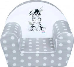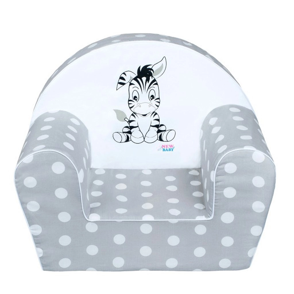 Detské kresielko New Baby Zebra je mäkučké, stabilné a vďaka penovej výplni veľmi ľahké, takže si ho dieťa jednoducho premiestni kamkoľvek potrebuje. Sivý poťah s bielymi bodkami dopĺňa milá potlač zebry, ktorá krásne zapadne do moderného detského interiéru.