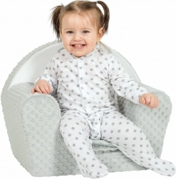 Štýlové a zároveň praktické detské kresielko NEW BABY z mäkkučkej minky v elegantnej sivej farbe je ideálne pre batoľatá. Plyšový povrch s jemným 3D bodkovaním je príjemný na dotyk, zatiaľ čo stabilná penová konštrukcia zaistí komfort pri hraní, prezeraní knižiek aj relaxe. Roztomilý motív líšky dodá izbičke hravý akcent.