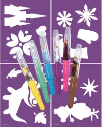 Objavte zábavné tvorenie s obľúbeným motívom Ľadové kráľovstvo. Sada fúkacích fixiek umožňuje deťom jednoducho vytvárať originálne obrázky – stačí fúknuť do fixky cez šablónu a farba sa jemne rozptýli na papier. Ideálne na domáce tvorenie, výzdobu aj výrobu prianí.