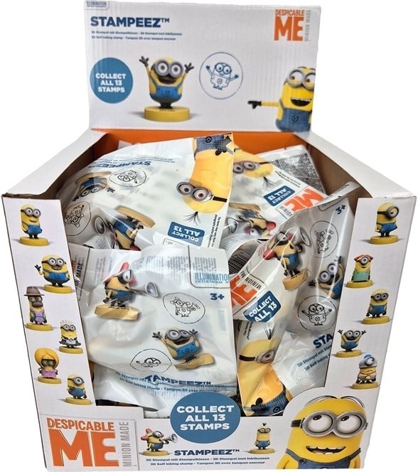 Objav zábavu s prekvapením! V každom sáčku série Stampeez s motívom Mimoni sa skrýva náhodná pečiatka alebo minifigúrka s obľúbenými postavičkami. Skvelé na zbieranie, výmenu s kamarátmi aj zdobenie zošitov a pozvánok. K dispozícii je viac rôznych dizajnov, obsah je náhodný. Perfektná drobnosť do odmien alebo ako malý darček. Cena za kus.