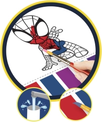 Zábavný omaľovánkový blok s motívmi Spidey pre malých umelcov. Praktické špirálové prevedenie ukrýva 20 omaľovánok, súčasťou je 6 farieb a štetec – všetko, čo deti potrebujú na okamžité tvorenie doma aj na cestách.