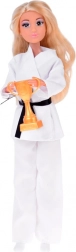 Biele kimono s čiernym opaskom a zlatá trofej pre víťazku. Bábika s kĺbovými pažami zvládne aj bojové pózy a oslavu úspechu.