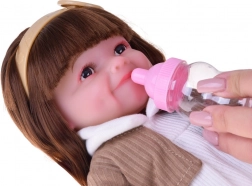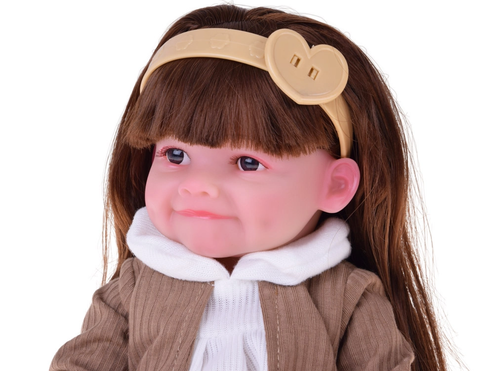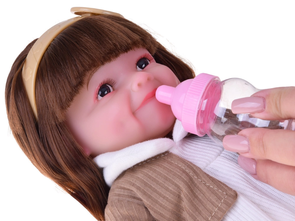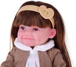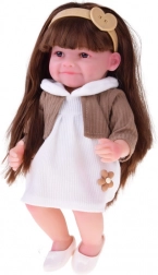 Bábika Tosia s jemným úsmevom a dlhými hnedými vlasmi poteší každé dieťa. Má mäkké, na dotyk príjemné telo, pohyblivé končatiny a vie samostatne sedieť. Súčasťou sú doplnok fľaštička, plienka a rodný list pre realistickú hru na starostlivosť. Štýlový outfit tvorí biele šatočky, béžový kardigán, čelenka a odnímateľné balerínky.