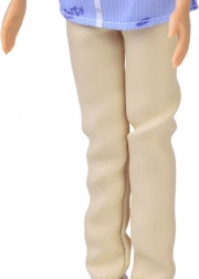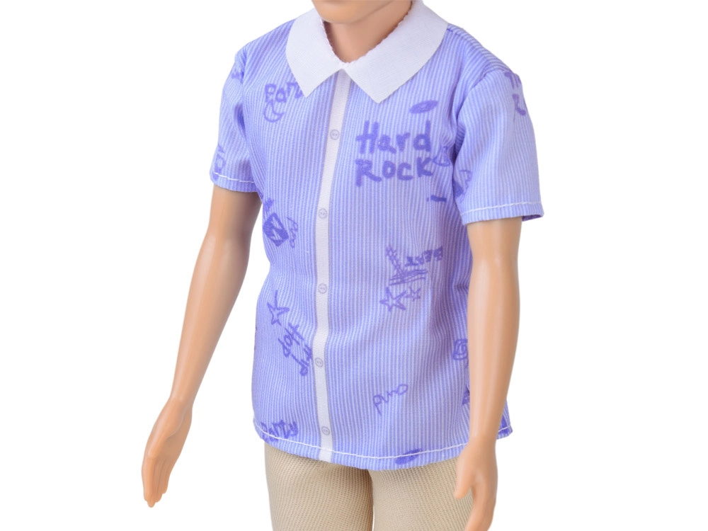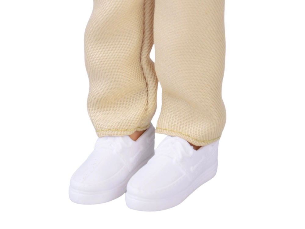 Elegantná košeľa s golierikom, svetlé nohavice a biele topánky dodajú bábike moderný vzhľad. Oblečenie možno vyzliekať a kombinovať.