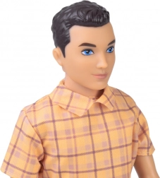 Anlily bábika chlapec brunet Paulo v kockovanej košeli a tmavých nohaviciach