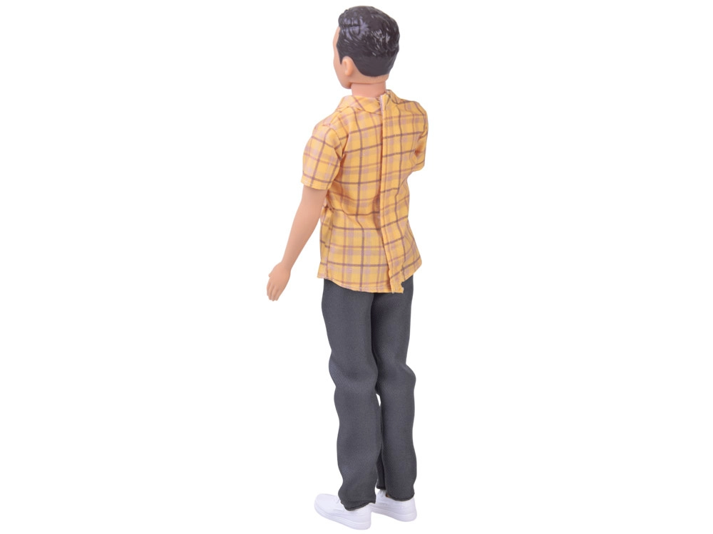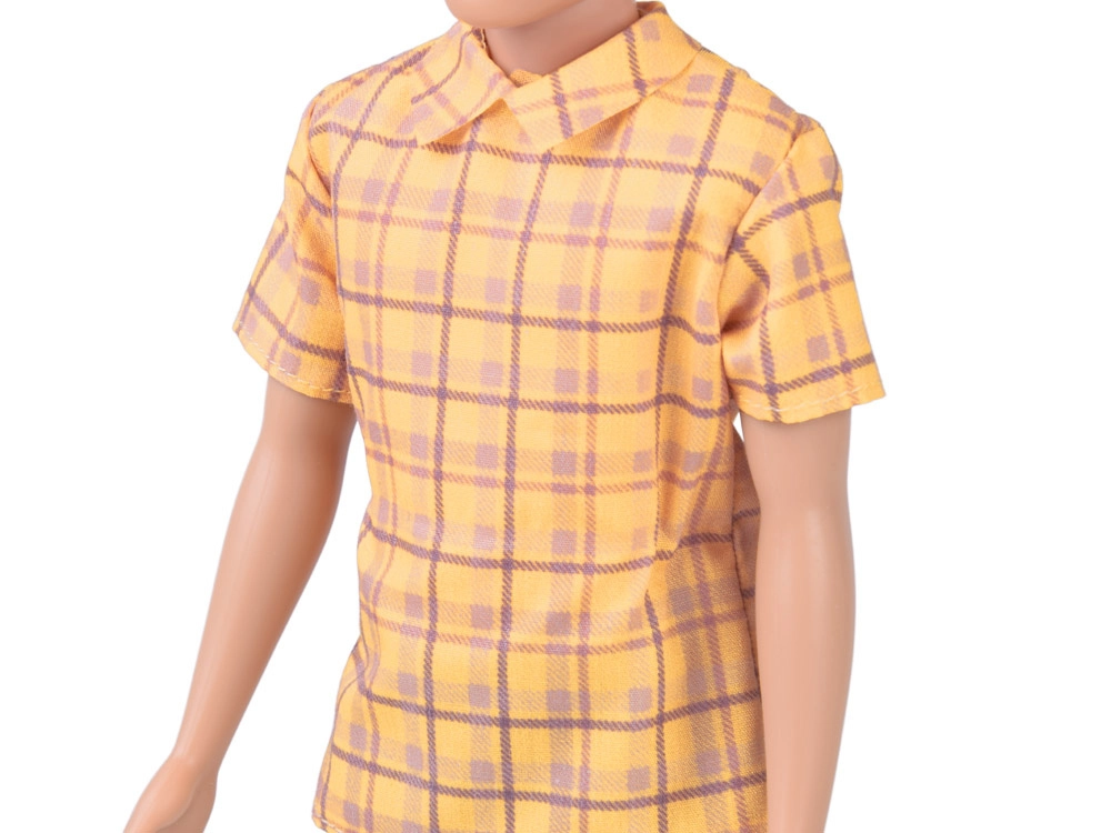 Outfit kombinuje ležérny štýl a výrazné farby: žltá kockovaná košeľa, tmavé nohavice a biele tenisky tvoria univerzálny set na rôzne herné situácie. Kĺbové končatiny umožňujú prirodzené pózy a dynamické scény, čo podporuje rozvoj fantázie a jemnej motoriky.