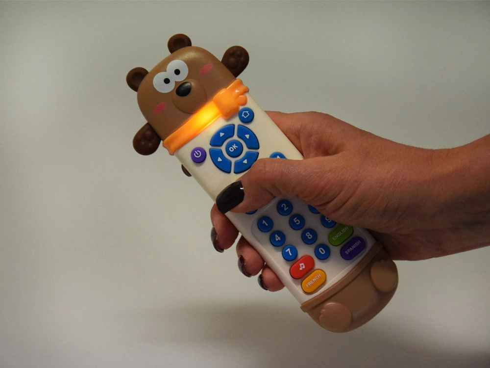 Tento interaktívny ovládač v tvare medvedíka vyzerá ako skutočné diaľkové ovládanie, navyše má mäkké gumené ušká a labky ako hryzátko. Farebné, prehľadné tlačidlá nabádajú k objavovaniu a bezpečná konštrukcia je prispôsobená pre najmenšie deti.