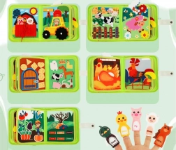 Deti spoznajú hospodárske zvieratá, farby, tvary a plodiny. Premiestňovaním dielikov vytvárajú vlastné scénky a rozvíjajú slovnú zásobu aj fantáziu.
