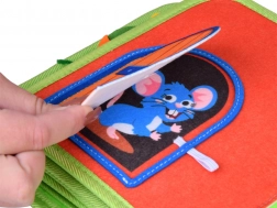 Knižka je vyrobená z mäkkého filcu príjemného na dotyk, všetky hrany sú hladké a bezpečné pre malé ruky. Podporuje jemnú motoriku, zmyslové vnímanie, učenie slovíčok a samostatnú hru. Vďaka kompaktným rozmerom je skvelým spoločníkom doma aj na cestách.