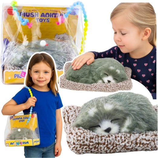 - Realistický vzhľad – verné detaily spiaceho psíka na mäkkom peliešku.