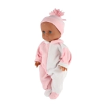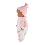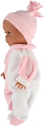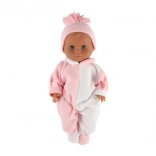 Táto realistická bábika bábätko je skvelým spoločníkom na každodenné hranie. Vďaka pevnému telu dobre drží tvar, ľahko sa oblieka a je odolná aj pri častom používaní. Štýlový bielo-ružový overal s milou ružovou čiapočkou podčiarkuje jej jemný vzhľad.