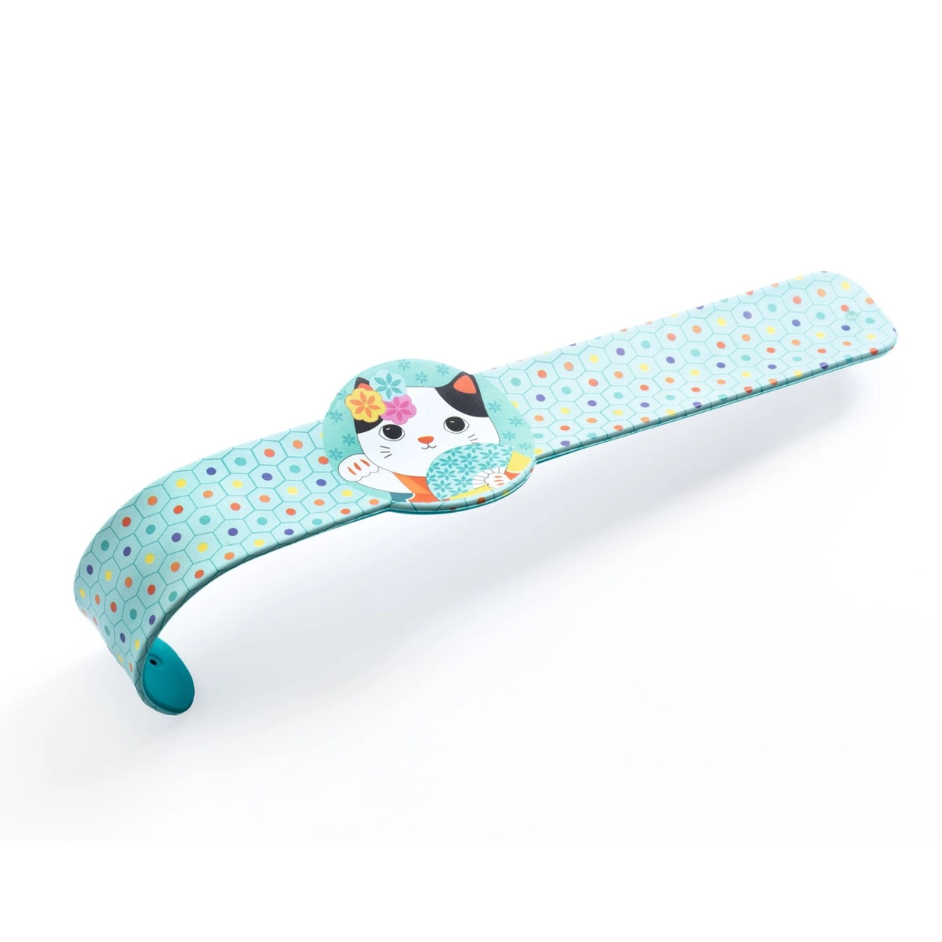 Roztomilé snap náramky DJECO sú hravý doplnok pre deti. Vďaka pružnému pásiku sa po ťuknutí rýchlo a jemne ovinú okolo zápästia a držia celý deň. Farebné potlače a plastická ozdoba s mačkou, srdiečkom alebo zajačikom dodajú outfitu kúzlo.