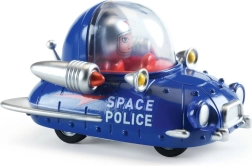 Autíčko Djeco Crazy Motors Space Police prináša do detskej izby intergalaktické dobrodružstvo. Modré policajné vozidlo s nápisom SPACE POLICE má priehľadnú kupolu s malou postavičkou pilota, strieborné raketové detaily a kolesá pre plynulú jazdu. Skvelé na samostatnú hru aj rozšírenie zbierky Crazy Motors.