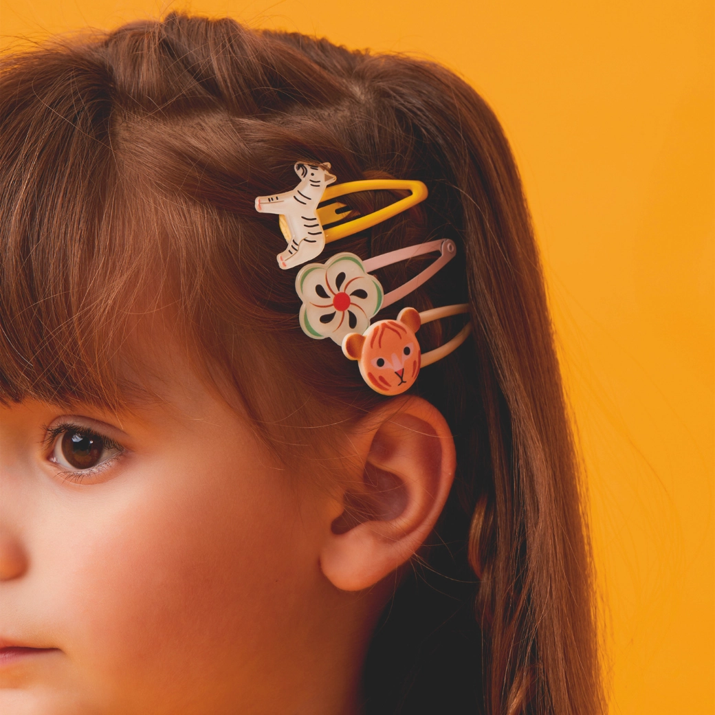 Rozžiarte účes hravým doplnkom – sada sponiek Nadette od značky DJECO pridá každému looku štipku exotiky. Ideálne na každodenné nosenie aj slávnostné chvíle, s pohodlným uchytením a jemným, detským dizajnom pre bezpečné a šetrné držanie vlasov.