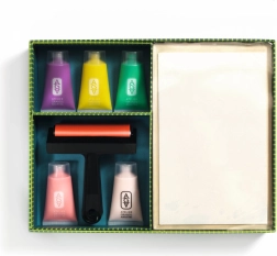 Sada na gélovú tlač Atelier od Djeco prináša intuitívny spôsob, ako tvoriť jedinečné odtlačky pomocou gélovej tlačovej dosky, valčeka a akrylových farieb. Vďaka jednoduchému postupu a viditeľným výsledkom je skvelá pre deti, školské projekty aj domáce tvorenie.