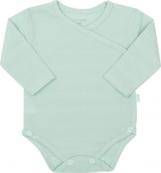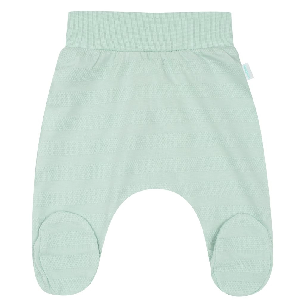 Súprava v jemnom mätovom odtieni s decentnou textúrou pôsobí čisto a moderne. Je ideálna do pôrodnice, na domáce nosenie aj ako milý darček. Dodáva sa v EKO balení, pripravenom na darovanie.