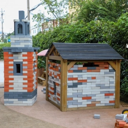 Hra s tehličkami podporuje jemnú motoriku, tvorivosť, fantáziu, priestorovú predstavivosť a trpezlivosť. Sada je skvelým doplnkom k detským domčekom či altánkom a vďaka odolnému prevedeniu sa hodí aj na záhradu alebo ihrisko. Domček nie je súčasťou balenia.