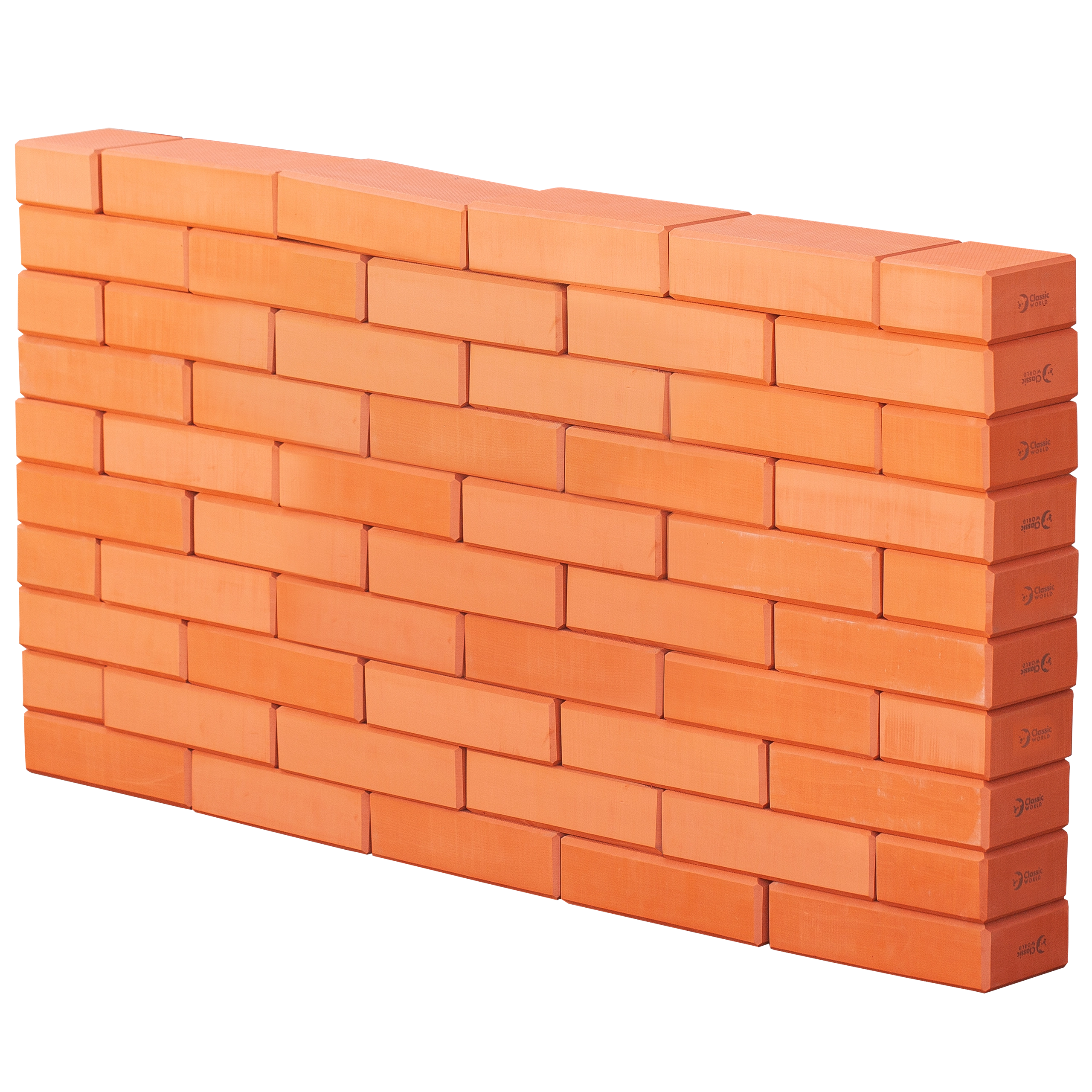 Sada 90 kusov obsahuje 70 celých tehličiek a 20 polovičných tehličiek v oranžovo‑červenom odtieni. Vďaka mäkkému materiálu EVA sú bloky ľahké, príjemné na dotyk a šetrné k detským rukám, pritom dostatočne pevné na stavbu múrov, domčekov aj pevností. Deti môžu spoločne plánovať a stavať, čím rozvíjajú spoluprácu a komunikačné zručnosti.