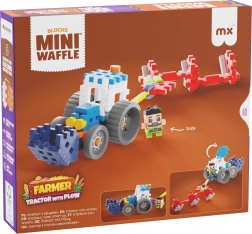 - stavebnica MINI WAFFLE FARMER – traktor s pluhom, 1 figúrka, návod krok za krokom