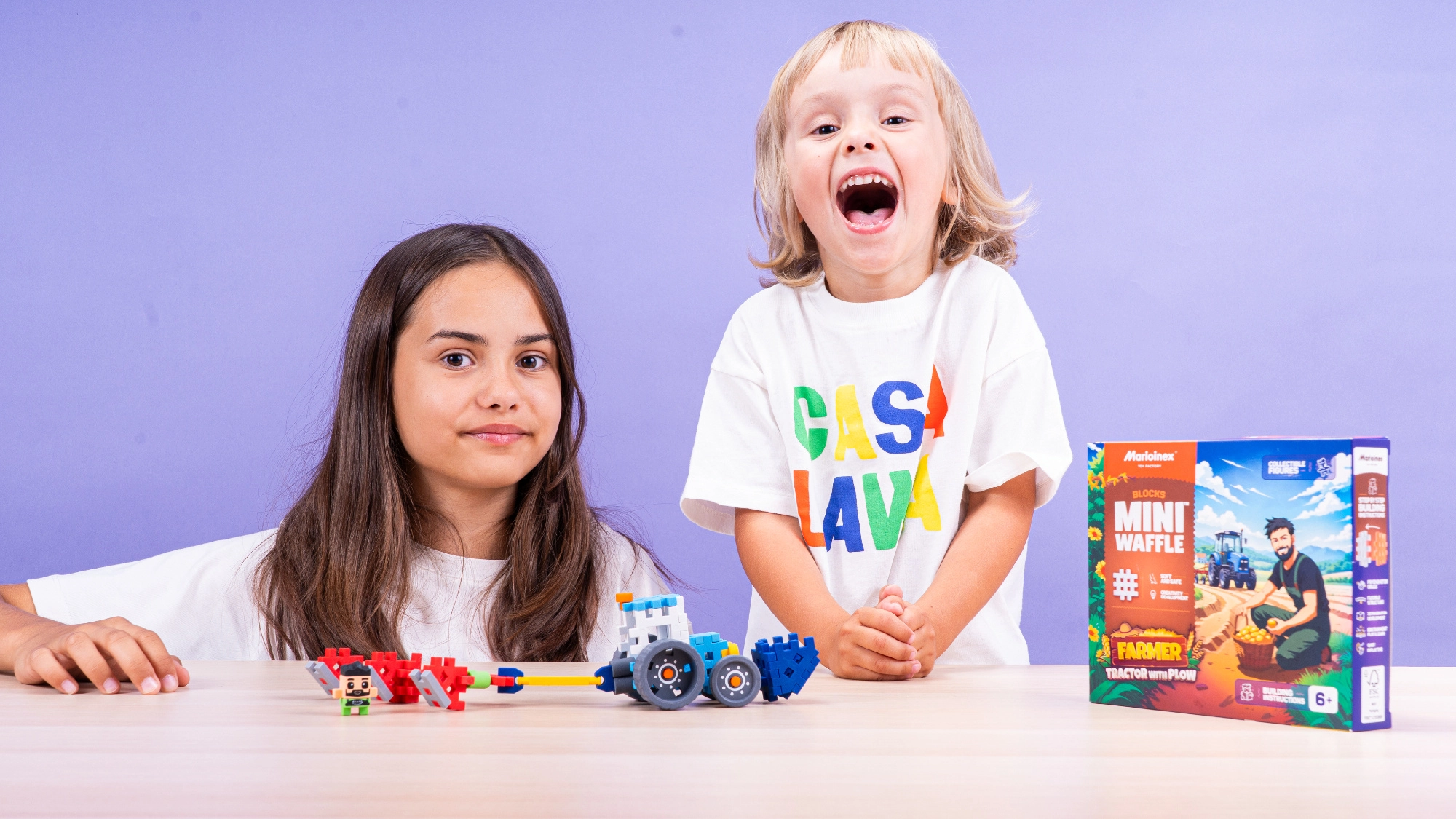 Objavte kreatívny svet farmy s originálnou stavebnicou MINI WAFFLE FARMER. Z 50 farebných a pružných dielikov postavíte traktor s pluhom a vďaka figúrke farmára zažijete množstvo herných scenárov. Kocky sa ľahko spájajú aj rozdeľujú, sú odolné a bezpečné a rozvíjajú kreativitu, jemnú motoriku aj koordináciu detí od 6 rokov.