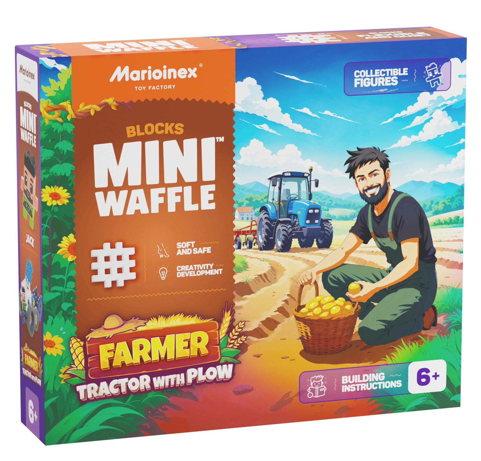 Stavebnica MINI WAFFLE FARMER – Traktor s pluhom prenesie deti do sveta každodennej práce na poli. Postavte realistický model traktora s funkčným pluhovým nadstavcom, zapojte fantáziu a vytvárajte vlastné príbehy z farmárskeho života. Vďaka pružným dielikom je stavanie intuitívne a príjemné a hotový model je pripravený na hranie.