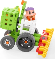 Z 60 dielikov zostavíte farebný kombajn s veľkými kolesami a prednou žacou lištou. Nechajte farmára riadiť stroj a zbierajte „polia“ vo vašej detskej herni.