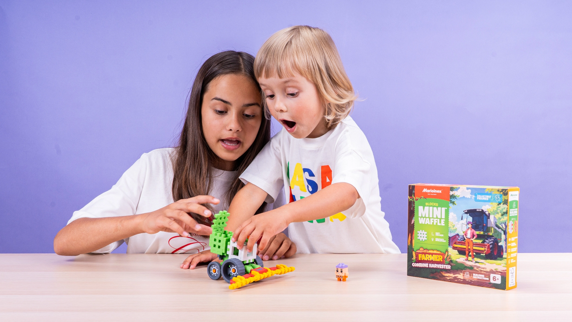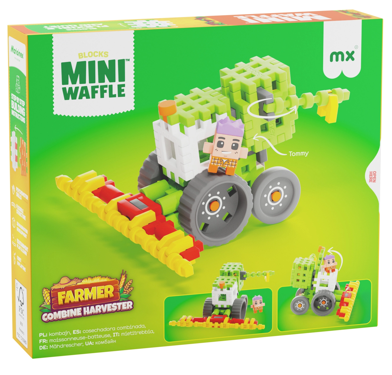 Vstúpte do života na farme a sadnite si za volant kombajnu! Stavebnica Marioinex Mini Waffle Farmár – kombajn deťom umožní spoznať prácu farmára, zbierať obilie a tvoriť nové príbehy pri každej hre. Dieliky Mini Waffle sú príjemné na dotyk, ľahko sa skladajú a vďaka svojej pružnosti vydržia aj nadšenú detskú manipuláciu.
