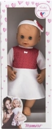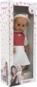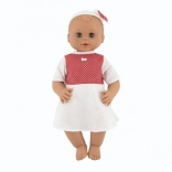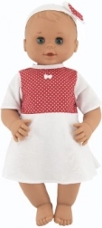 Bábika je perfektná pre malé deti už od narodenia, vďaka svojej bezpečnej konštrukcii. Oblečená je do bielych šatičiek s červenými bodkami, ktoré dodávajú bábike roztomilý vzhľad. Žmurkajúce oči pridávajú na autentickosti a interaktivite.