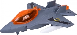 Sivý prúdový lietadlový stroj s oranžovým prekrytom kabíny umožní usadiť pilota dnu. Ideálny na letecké súboje a rýchle akčné výpady.