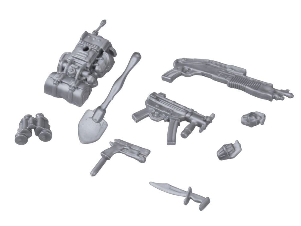 - Tank s radlicou, vrtuľník, stíhačka, figúrka vojaka, obranné stanovisko s guľometom, taktický batoh a príslušenstvo (zbrane, ďalekohľad, lopatka a pod.).