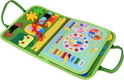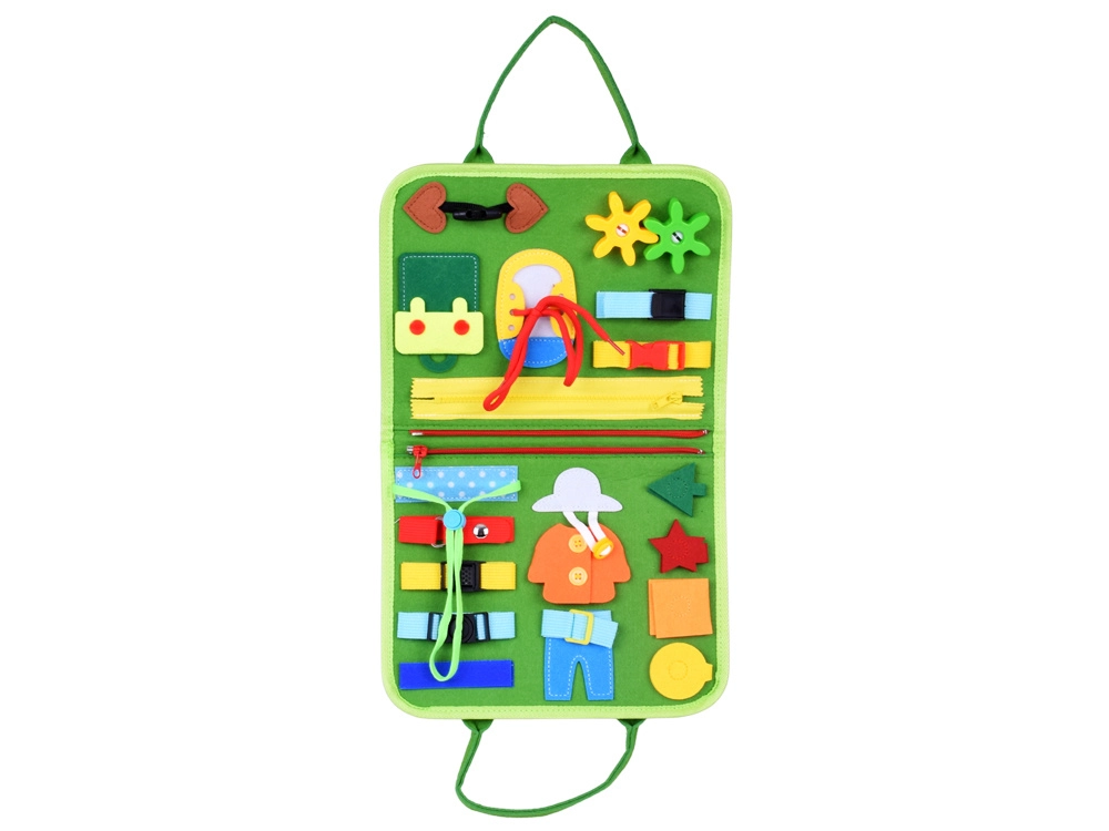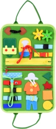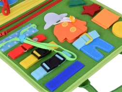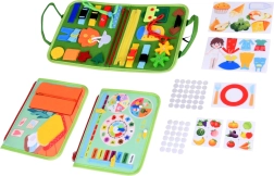 Šnurovanie, zipsy, pracky, gombíky, tvary na suchý zips, kuchyňa, detská izbička, záhradka i kalendár – pestrá ponuka aktivít na rozvoj motoriky a logiky.