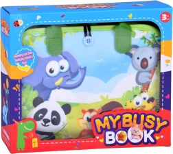Táto kreatívna knižka rozvíja zručnosti detí prostredníctvom zmysluplnej hry. Vo vnútri nájdete odnímateľné mäkké stránky so zipsami, prackami, gombíkmi, šnúrkami, tvarmi na suchý zips a edukačné prvky ako hodiny s otočnými ručičkami, dni v týždni, počasie a kalendár. Deti si precvičia koordináciu oko–ruka a logické myslenie.