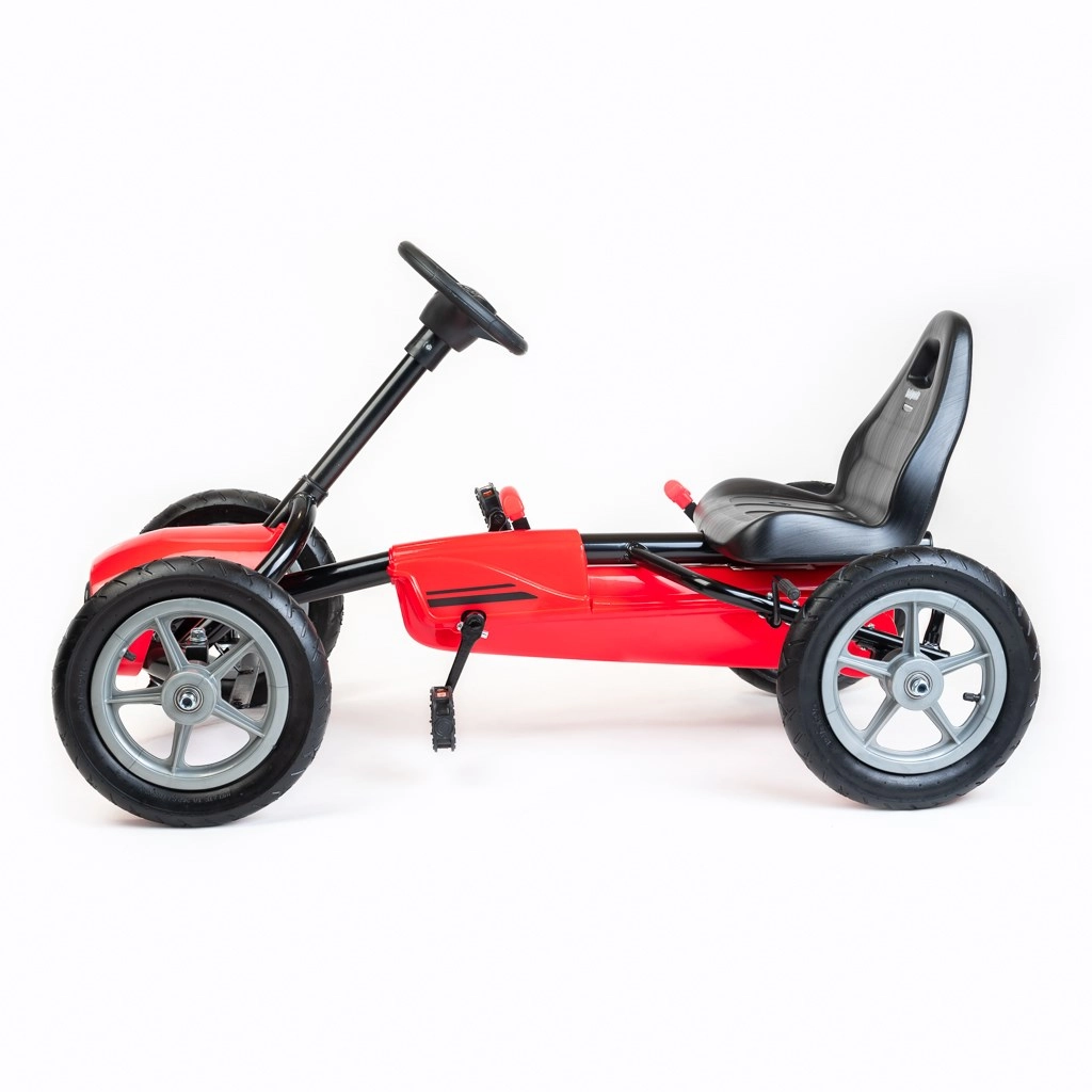 Šliapacia motokára BABY MIX Buggy je skvelým spoločníkom pre deti, ktoré milujú pohyb a voľnočasové aktivity vonku. Ergonomické sedadlo s dvoma stupňami nastavenia vzdialenosti od volantu zaisťuje pohodlie, zatiaľ čo stabilná kovová konštrukcia s plastovými krytmi prináša odolnosť a športový vzhľad. Veľké nafukovacie kolesá s ložiskami zaisťujú hladkú jazdu na asfalte aj na spevnených cestách.