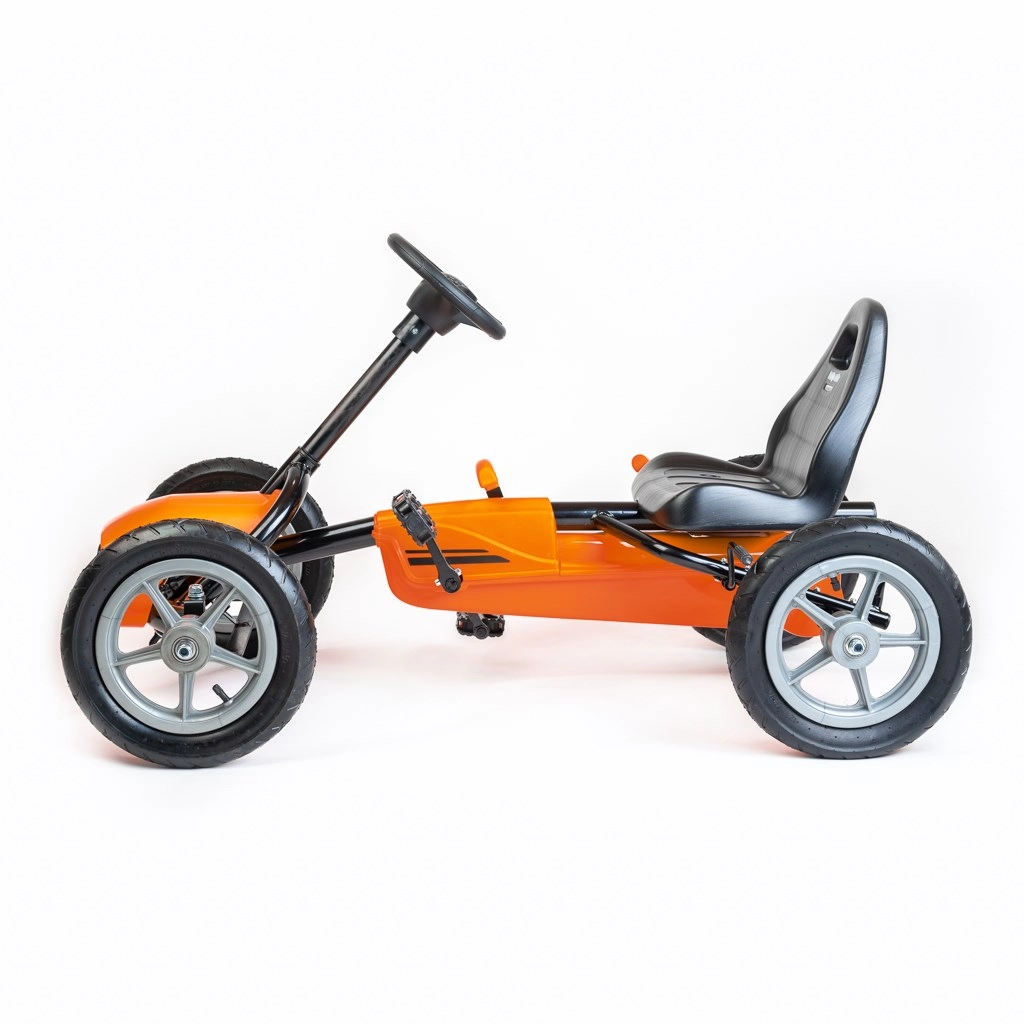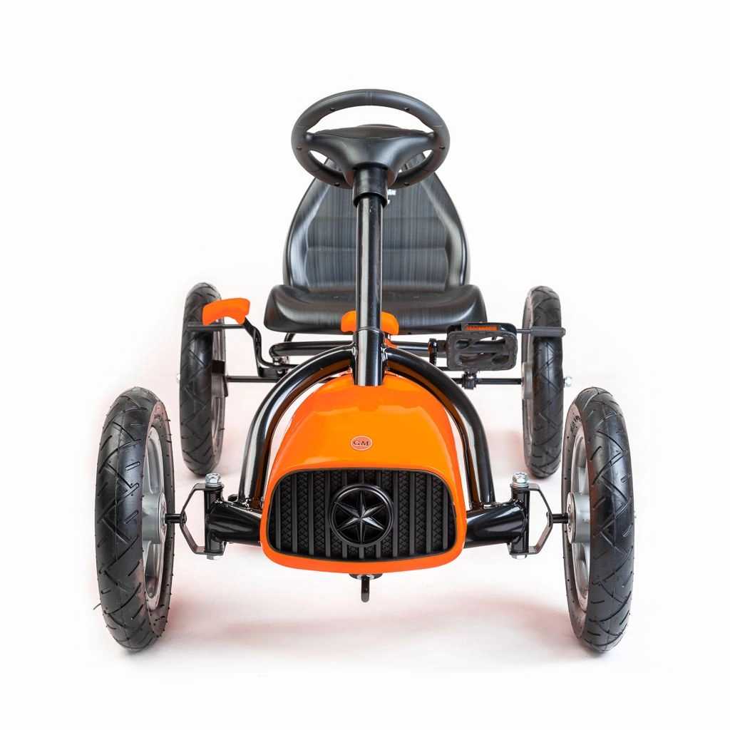 Bezpečnosť je na prvom mieste: ručná brzda na oboch zadných kolesách, kryt reťaze a stabilný rám z ľahkého kovu spĺňajú európske bezpečnostné normy. Prevody umožňujú jazdu vpred aj vzad a voľnobeh, takže je motokára vhodná ako pre začiatočníkov, tak pre malých pretekárov.